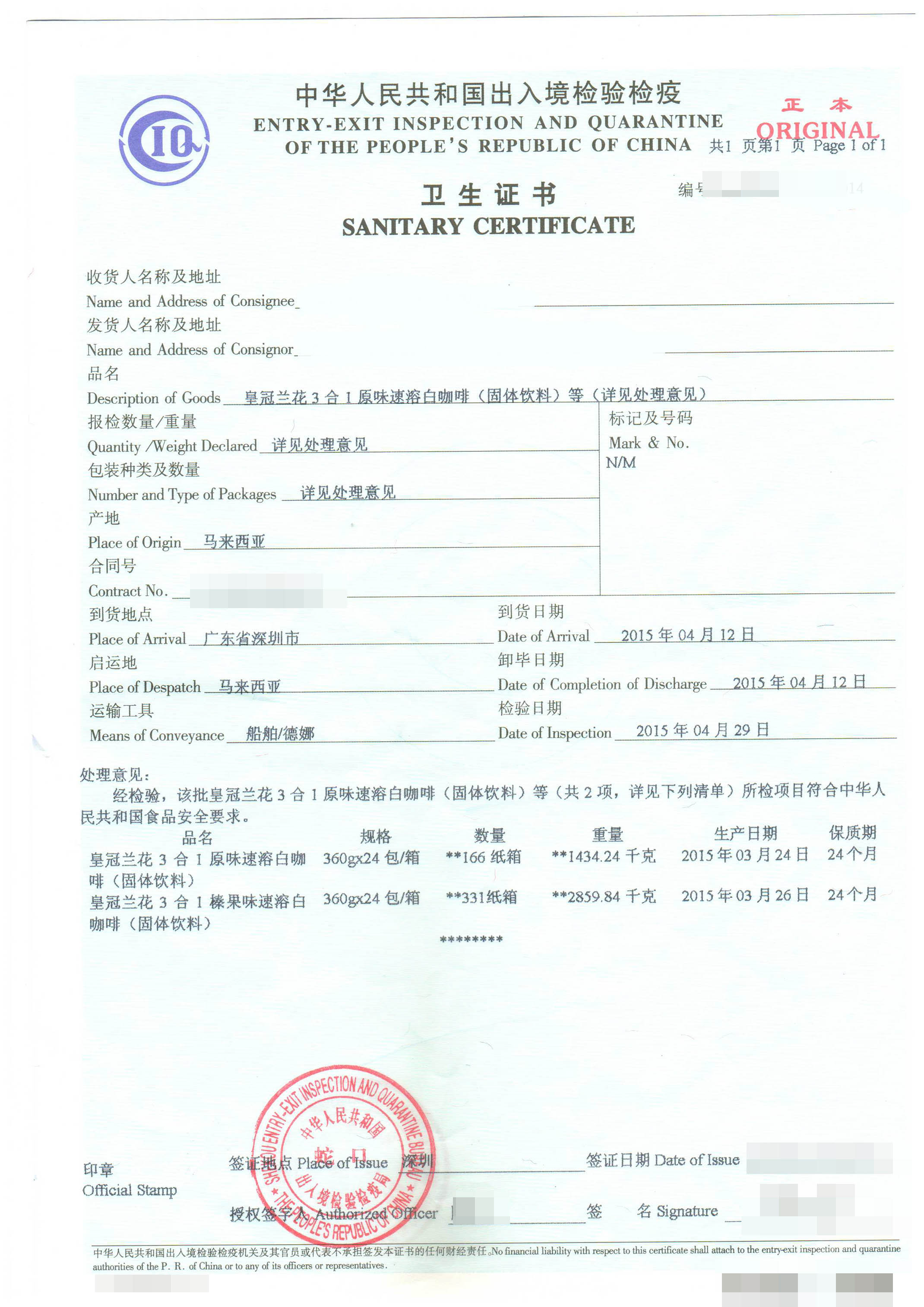 四、馬來西亞白咖啡進(jìn)口案例的詳細(xì)信息: