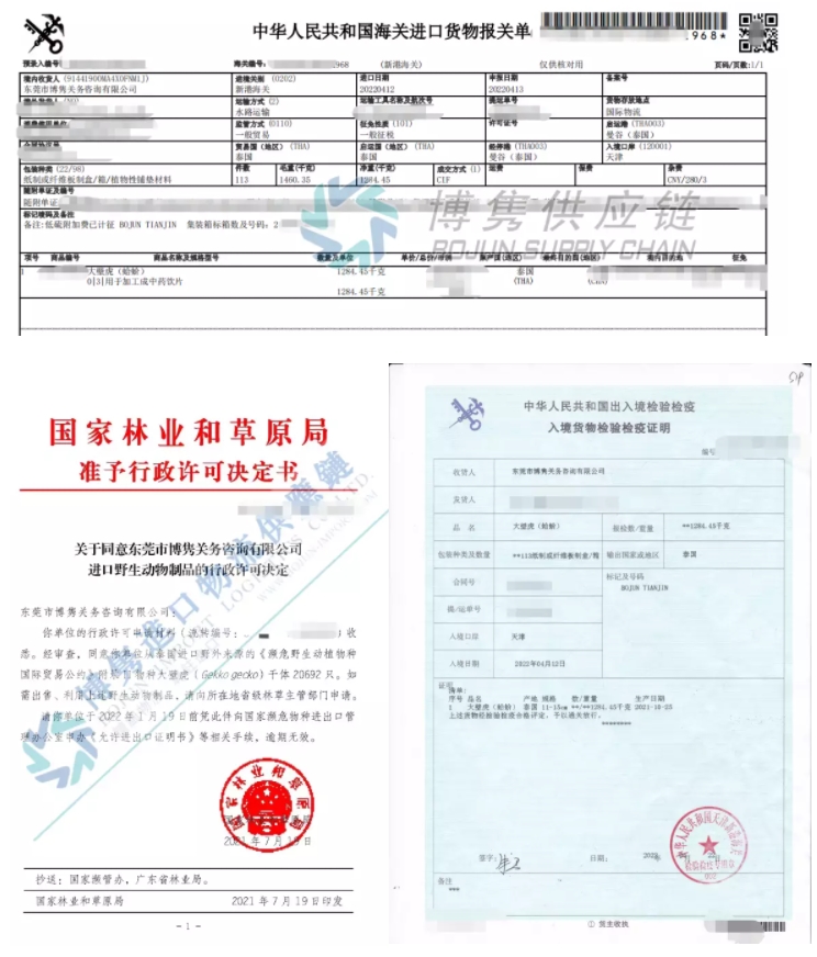 問:進(jìn)口蛤蚧,但資質(zhì)又不齊全,怎么辦?答: 可以掛靠藥企資質(zhì),借用他們的資質(zhì)進(jìn)口,也就是報(bào)關(guān)單里面的境內(nèi)收貨人,但是實(shí)際消費(fèi)單位是你自己。