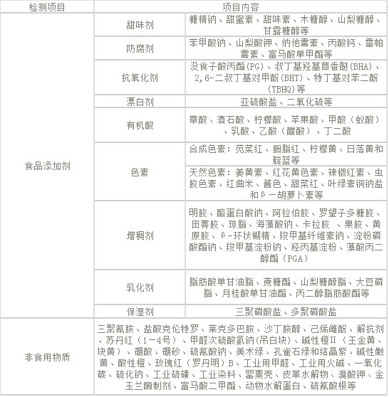 二、食品添加劑和非食品物質(zhì)檢測(cè)項(xiàng)目
