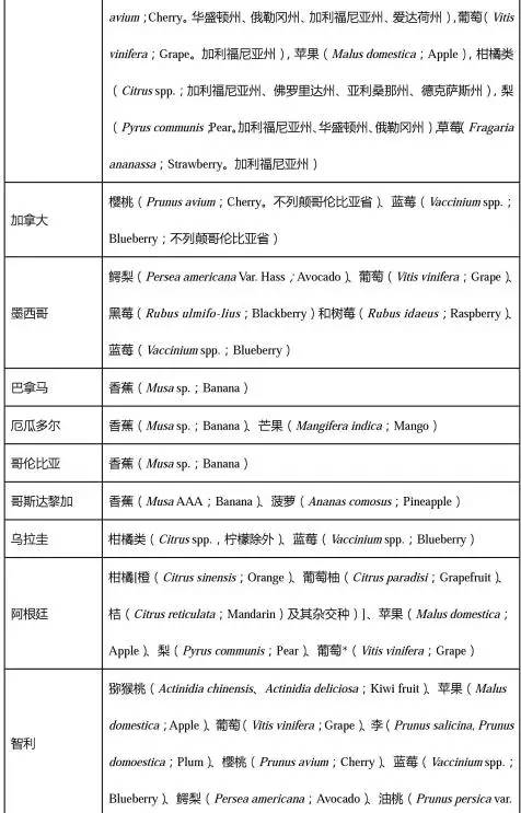 (1) 水果名稱按照中文名、拉丁學名和英文名順序表示,拉丁學名為斜體。