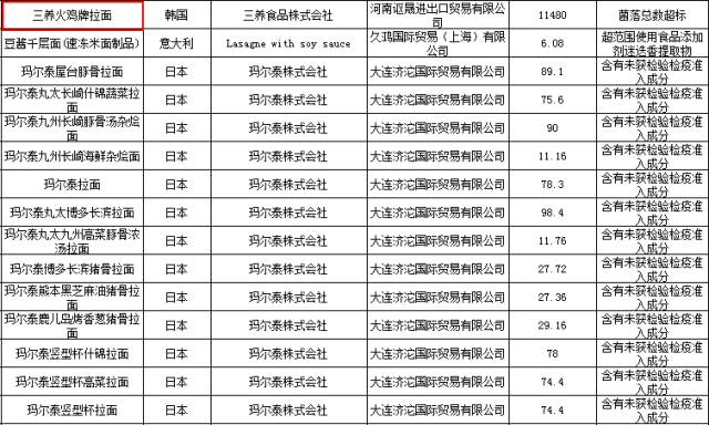 1批次三養火雞牌拉面被檢測出菌落總數超標,菌落總數超標意味著致病菌超標的機會增大,增加危害人體健康的幾率。