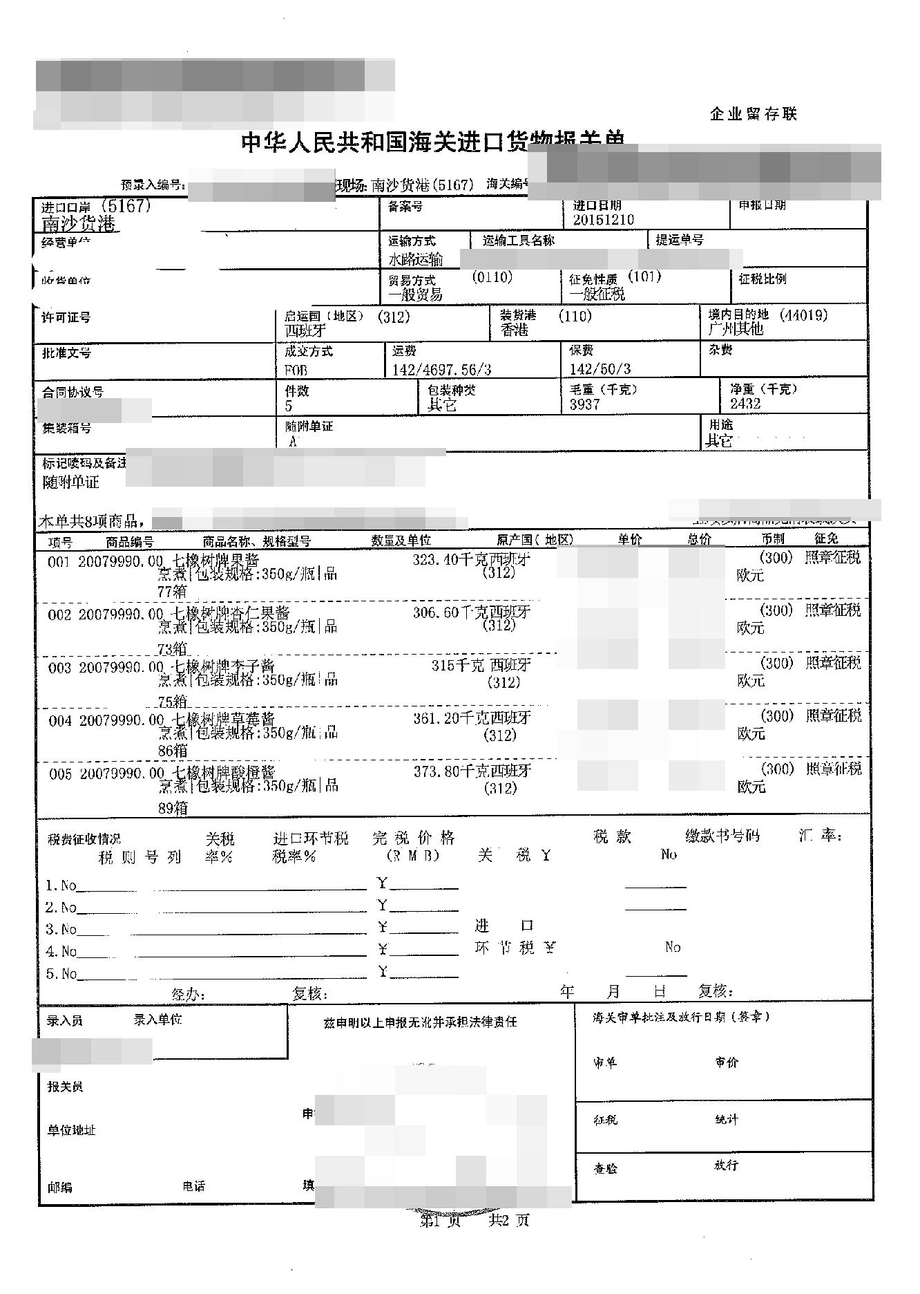 四、果醬進(jìn)口案例貨物的詳細(xì)信息: