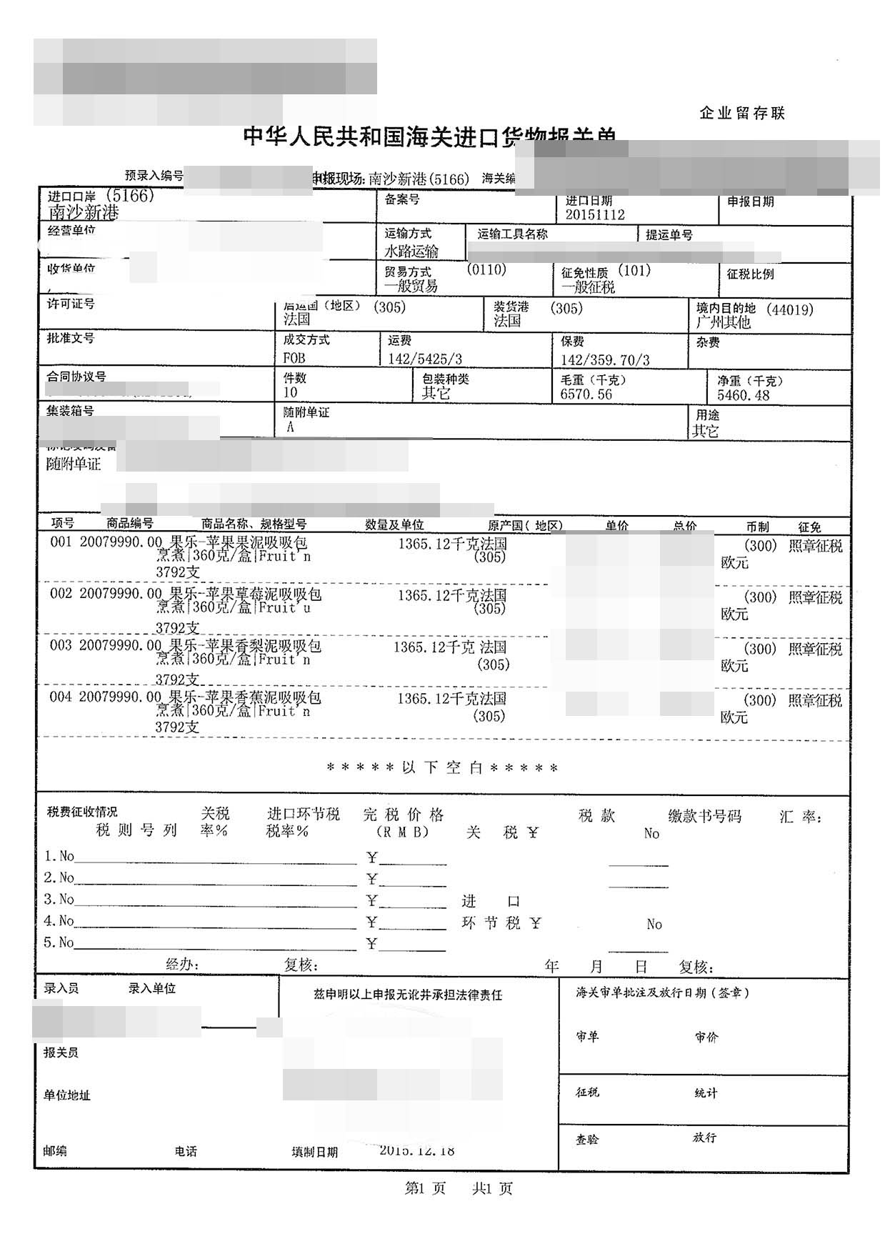 四、果泥進口案例貨物的詳細信息: